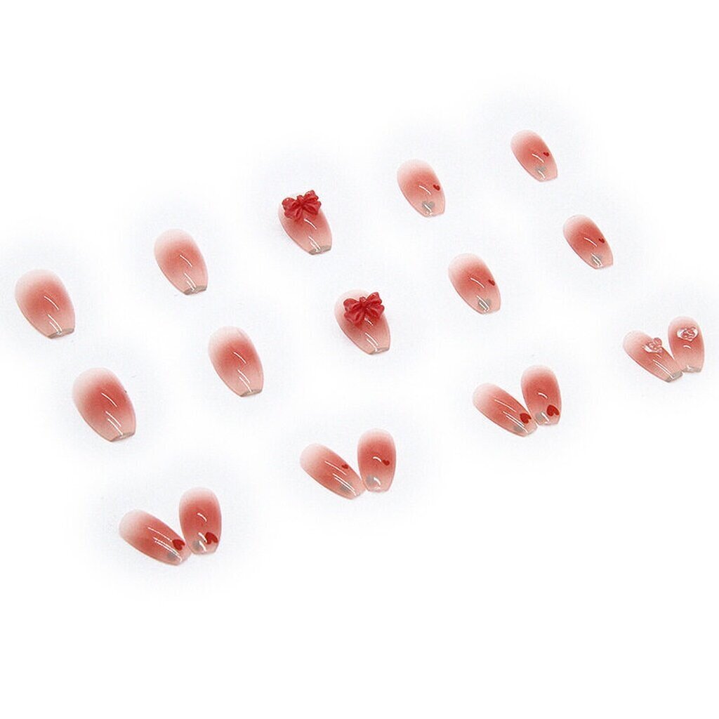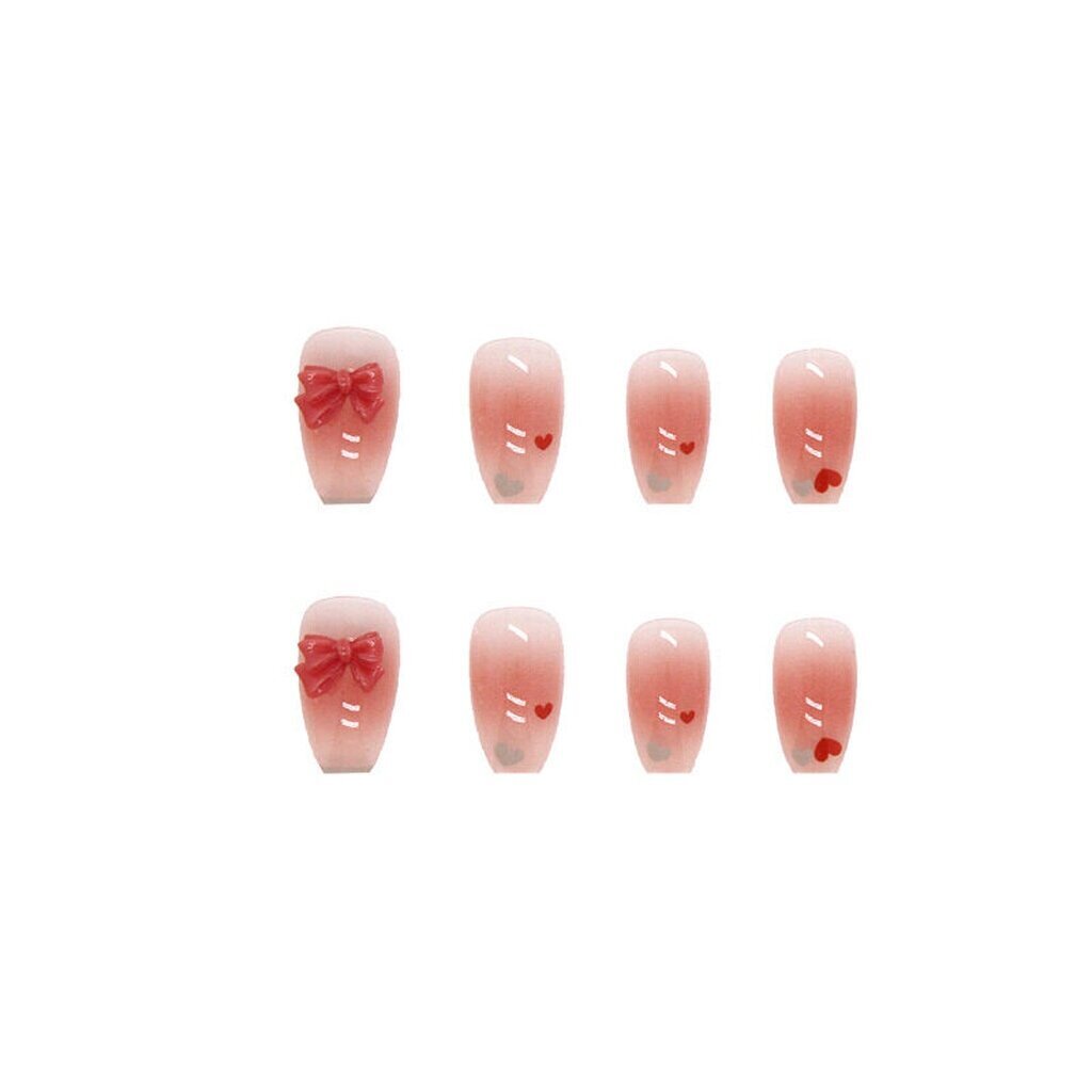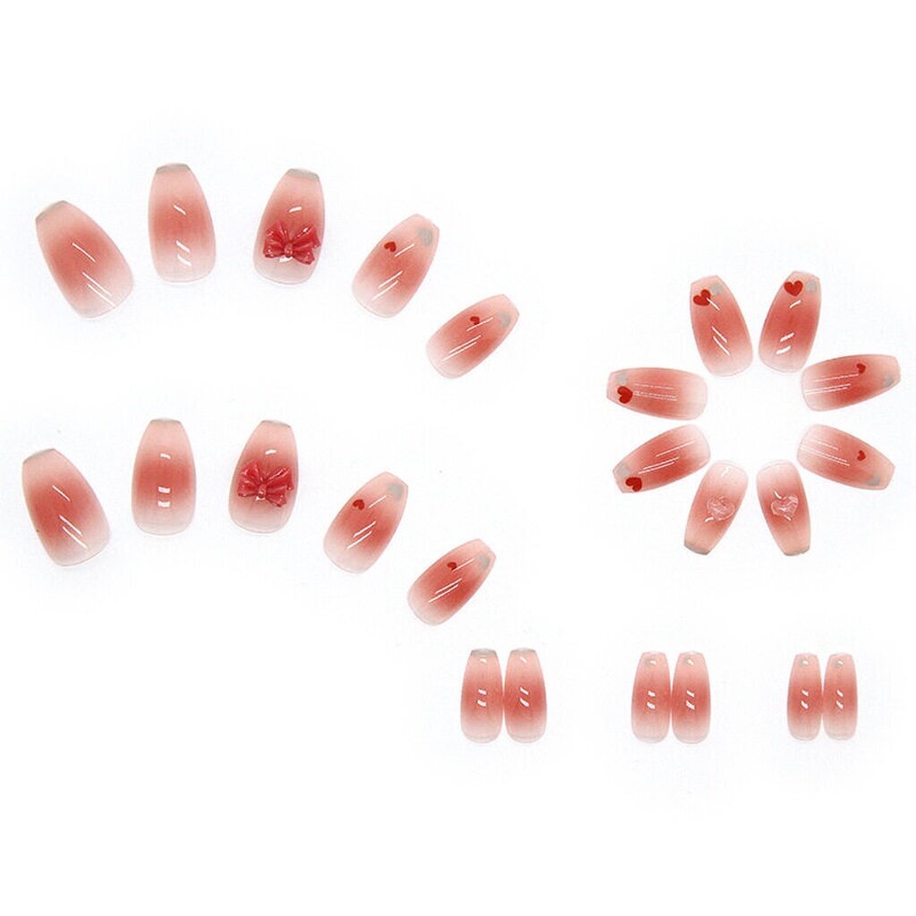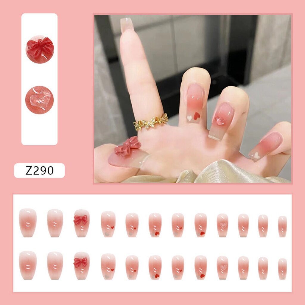 PPHOO✨ เล็บปลอม พร้อมส่ง Z290 ชมพู ส้ม หัวใจ เล็บ 24 ชิ้น สำเร็จรูป กันน้ำ แถมกาว สำหรับติดเล็บ